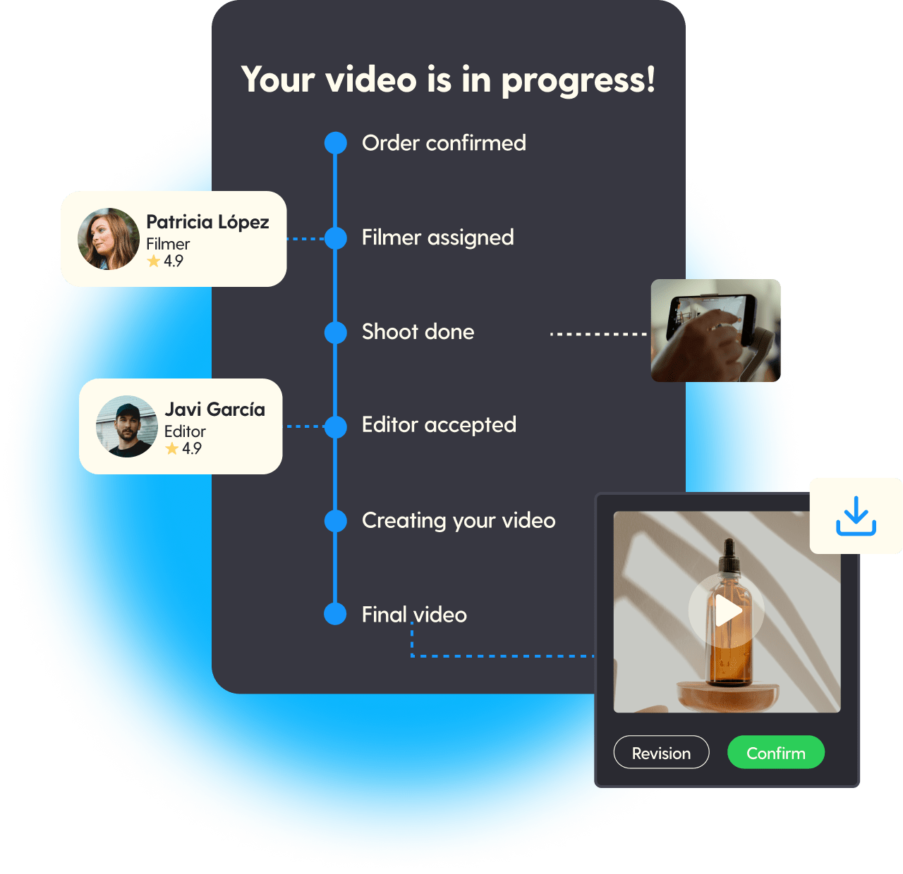 Book your service and we connect you with a filmer (videographer) for a smooth video production.