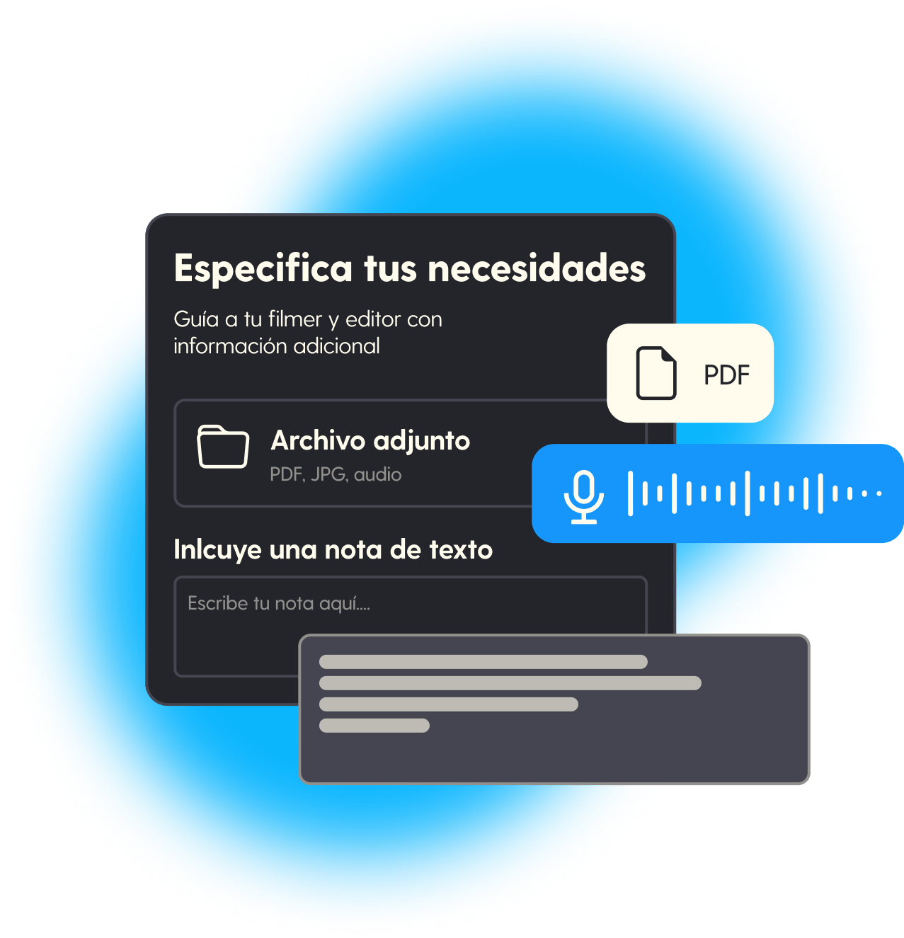 Exprésate completamente con nuestras opciones de personalización. Adjunta archivos, agrega notas de voz o comentarios adicionales para una experiencia única.